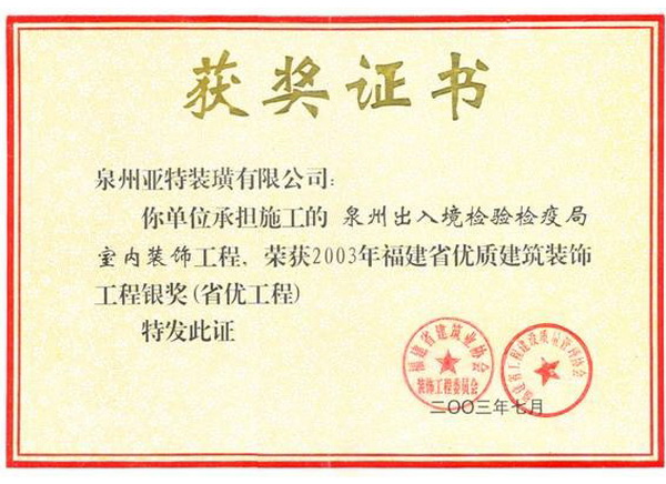 2003年福建优质建筑装饰工程银奖(省优工程)