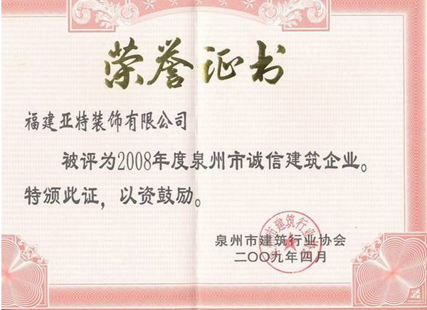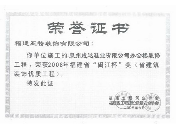 2008年福建省“闽江杯”奖(省建筑装饰优质工程)
